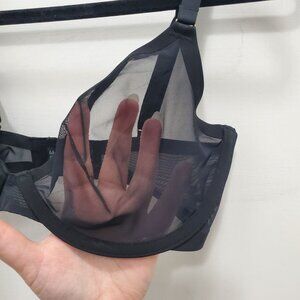 CUUP The Plunge Mesh Black Fully Sheer Unlined Cup Underwire Bra Size 30F