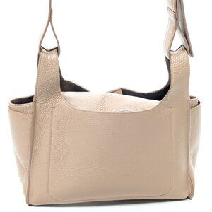 This fabulous leather messenger shoulder bag is in beautiful neutrals color, suede lining, gold tone hardware, adjustable comfortable strap. Unique design and shape, buttery leather, artisan type craftsmanship and like all Cuyana bags, it was made in very small batches so availability is limited.