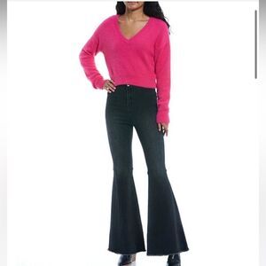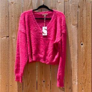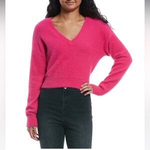 C&V Chelsea & Violet V-Neck Eyelash Sweater Fuchsia Color , Size-XXL