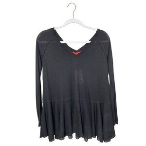 C&V Chelsea and Violet Peplum Top Size XS Black Knit Ribbed Long Sleeve New
