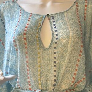 CV by Cynhia Vincent Global Print Kaftan Tunic Top M Turquoise Blue