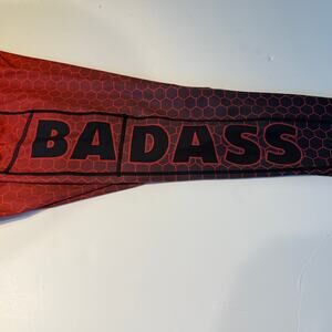The reverse side showcases a red and black ombré honeycomb print with the bold “BADASS” graphic down the leg.