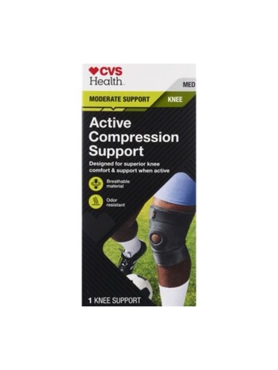 Experience optimal knee support and comfort with CVS Health Knee Moderate Active Compression Support. This compression support is designed to provide targeted compression and moderate support to the knee joint, making it ideal for individuals with mild to moderate knee issues or those seeking extra support during physical activities. Crafted with high-quality materials, it ensures a snug and comfortable fit. The compression technology helps improve circulation and reduce swelling, promoting faster recovery and enhanced performance. Trust CVS Health for reliable knee support and stay active with confidence.