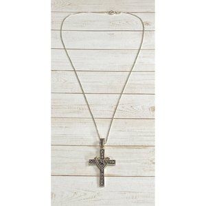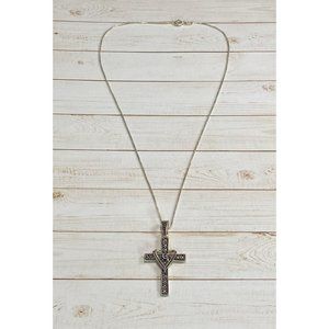 The piece is in good condition. Chain and pendant stamped 925. Pendant additionally signed CW Cross measures about 1 5/8 x 7/8 inches. The chain is 16 inches long.