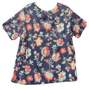 CW Classics Blue Multicolor Floral Blouse Size 2X Short Sleeve