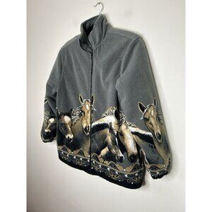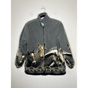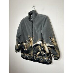 CW Classics Grey Fleece Sherpa Lining Horse Print Full Zip Jacket Women’s Small