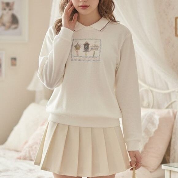 CW Classics Holiday Christmas Coquette Embroidered Pink Collared Sweater Size M