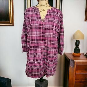 CW Classics Lightweight Flannel Purple Berry Plaid Tunic Top Sz XL NWOT