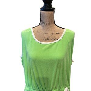Keywords: plus size romper, lime green romper, summer fashion, sleeveless romper, adjustable fit, casual wear, beach outfit, garden party attire, women's romper, CW Classics, 3XL romper, elastic waistband, drawstring closure, pre-owned fashion, relaxed fit.