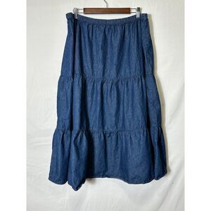 CW Classics Women's Denim Tiered Prairie Skirt 1X Cottagecore Peasant BOHO. Excellent pre-owned condition, no rips, tears, snags, pulls or stains.