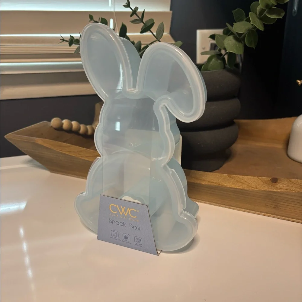 CWC bunny-shaped snack box in translucent white. Cute, kid-friendly design for portioned snacks and small treats. Made from durable, food-safe material for everyday use. Easy to open and clean for convenient serving and storage.