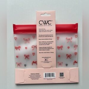 CWC (Cook With Color) 6-piece reusable storage bag set. Clear bags with pink and red floral print. Red zip seal. Eco-friendly and reusable. Great for everyday storage.