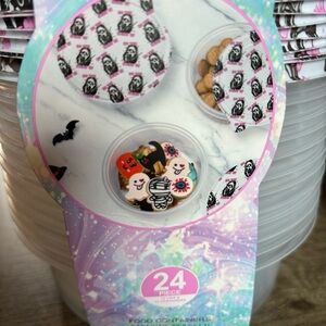 CWC Cook With Color Ghostface Food Storage Container Set NWT One set of 12 round containers One set of 12 rectangular containers East set contains 12 containers and 12 lids BPA FREE Great for gift giving sweet treats, lunches, food prep, organizing or a spooky time gift Tags: Pasteloween, Halloween, Scresm Movie, ghostface, goth, cute goth, pastel, goth, soooky time, spooky girl, pink, gift, kitchen, work, travel
