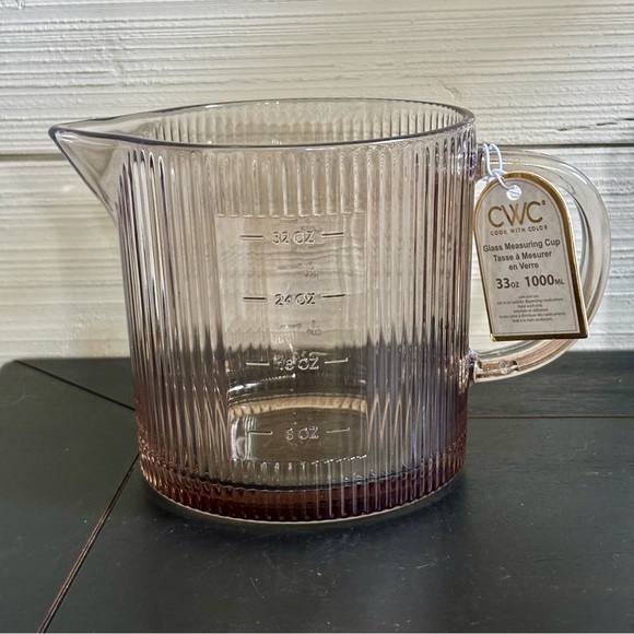 The CWC Glass Measuring Cup is a versatile kitchen tool with a capacity of 33oz (approximately 4 cups). Made of glass in a brown color, this liquid measuring cup is perfect for all occasions. Perfect for everyday cooking or special occasions, this measuring cup from CWC is a practical and stylish addition to any kitchen collection.