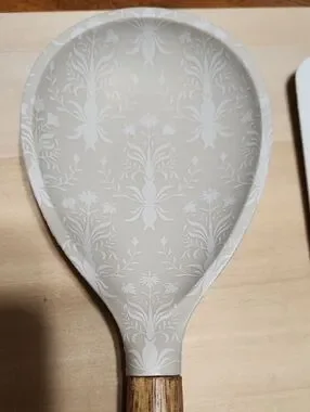 I'm selling these two utensils together as a set.So nicely made.I have 3 sets available, selling each SEPARATELY. The backdrop on these are of a khaki with an offer white design.So pretty.ALL ARE B.N.W.T.