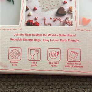 Set of 6 reusable storage bags with floral design. Features red and pink accents. Eco-friendly and BPA free.