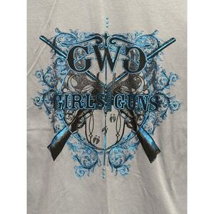 CWC Gray/Teal Graphic "Girls With Guns" Long Sleeve Shirt Crew Size XS Logo