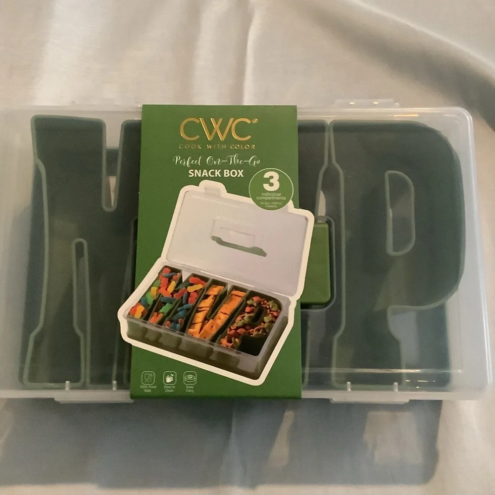 Organize your snacks with the CWC Green Snack Box. Perfect for keeping your food fresh and accessible.