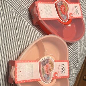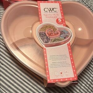 Set of 2 heart shaped snackle boxes - red and pink. New never used. Convenient carrying hales with 5 individual compartments- great for fruit, nuts, candy, snacks, etc.