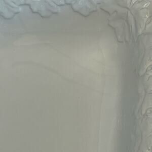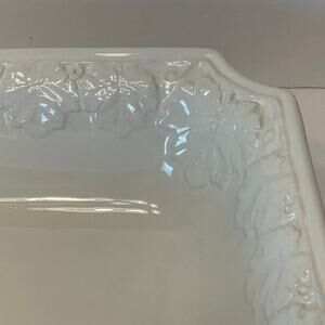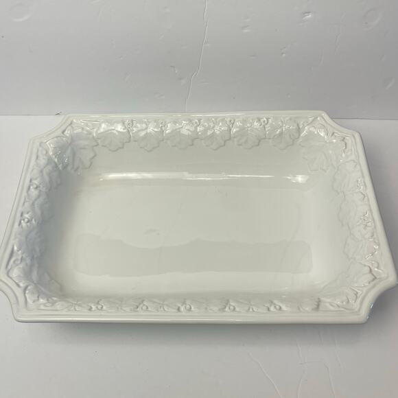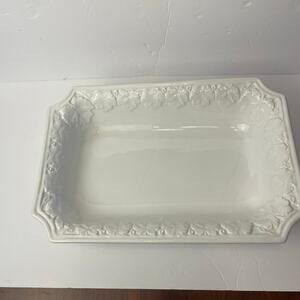 Beautiful, perfect condition, white serving dish by CWC, Made in Italy, embossed with the a leaf patter around the edge, rectangular with cut out corners. Just perfect for your next dinner party. Normal wear as seen in pictures.