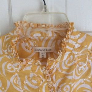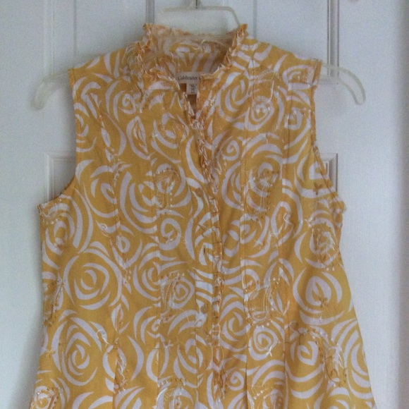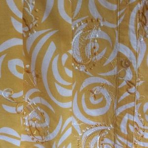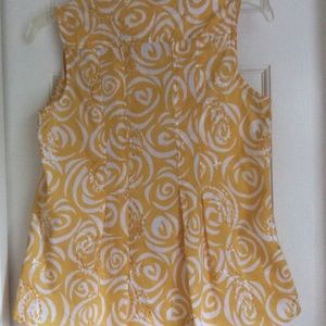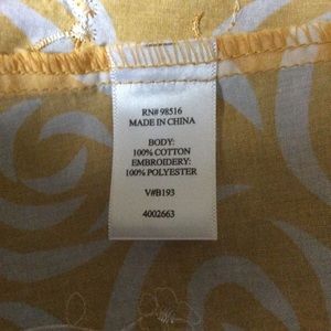 This beautiful little top is 100% cotton with a scattered embroidery pattern. The color is true as shown and measures 17 1/2” across from the underarms. Length: 25”. The tag states SP 6-8, but fits more like a 4P.