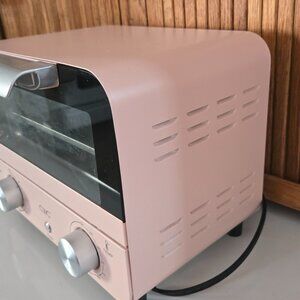 Cute little pink retro style toaster oven. It was only used several times in my little Cafe to heat up crossiants and such. She works great and looks so cute on the counter.