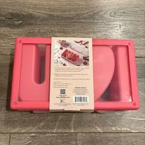 CWC snack box with heart-shaped compartments. Vibrant pink color. Perfect for organizing snacks.