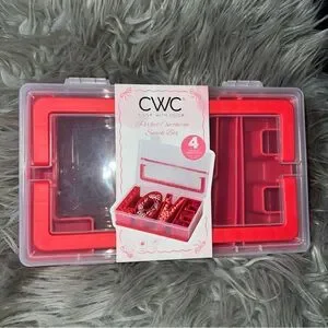 CWC snack box with red compartments. Perfect for organizing snacks.