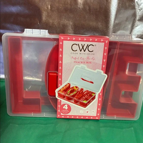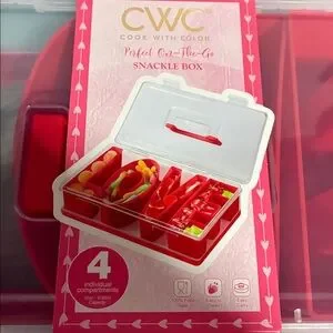 CWC Snackle Box in vibrant red. Perfect for organizing snacks on the go.