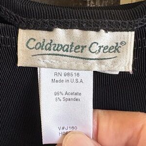 Coldwater Water Creek black shell, 2X, no size tag (but it’s what I used to wear)perfect alone or under a jacket, no tears or snags.