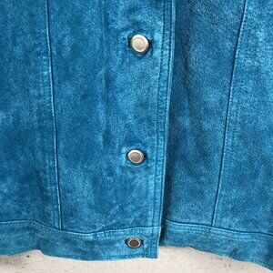 CWS Leather Jacket Womens 1X Plus Size Blue Suede Trucker Turquoise Western