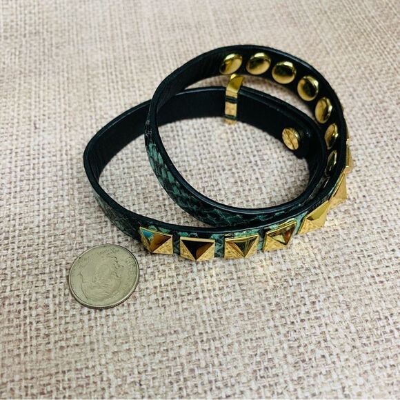 C Wonder Turquoise Snake‎ Skin Leather Gold Stud Wrap Bracelet