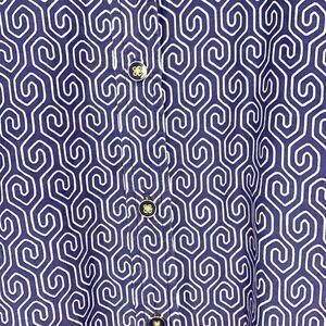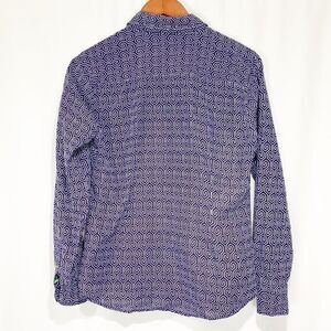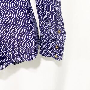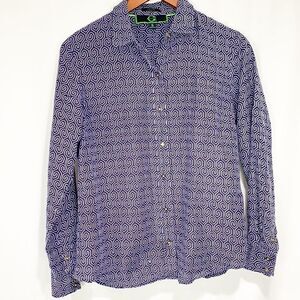 C. Wonder Blue and White Geometric Silk Cotton Blend Button Down Blouse Small