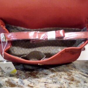 Style name - Clara Embossed Logo Shoulder Bag This is a RED bag with gold accents.