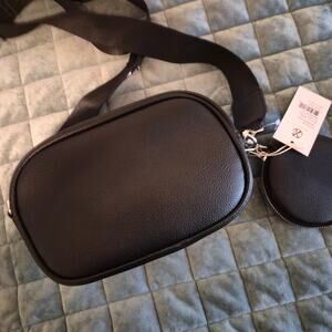NWT CXL By Christian Lacroix Black pebble Crossbody Bag w/ Coin Pouch (airpod holder)
