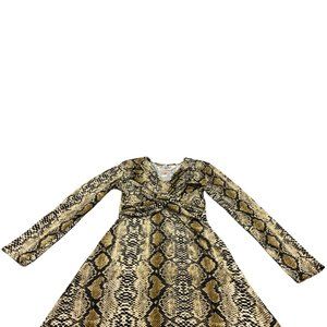 C&Y Bodycon Stretchy Long Sleeve Maxi Dress Leopard Print Front Twist Casual