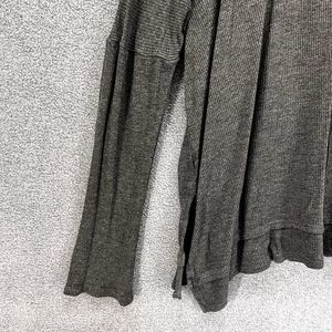 CY Fashion Sweater Womens Medium Gray Pullover tide up front waffle knit relaxed