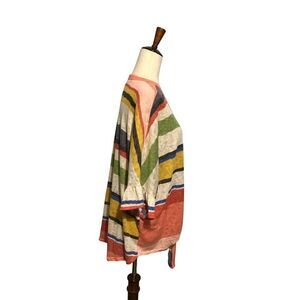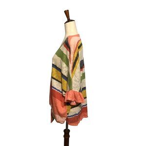 CY Fashions presents a stylish oversized top in cream and orange stripes with a tie front detail. Perfect for a casual look, this multicolor piece offers a relaxed fit and versatile style.