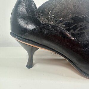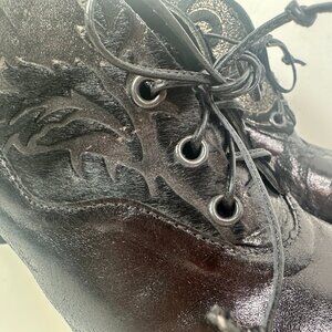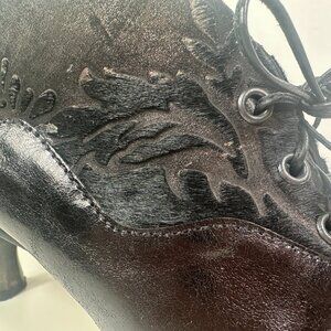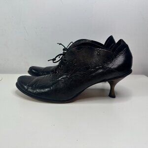 CYDWOQ Vintage 2 Tone Shiny Leather Lace Up Ankle Shoes Victorian Size 39.5