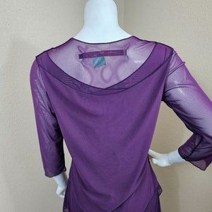 CYNTHIA ASHBY Purple Nylon Sheer 3/4 Sleeve Layered Top~Size S