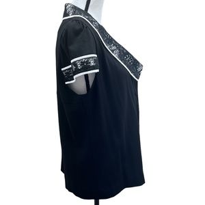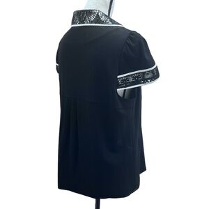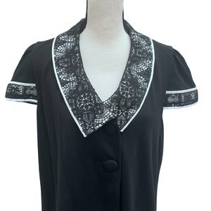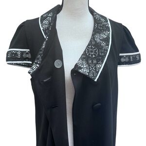 CYNTHIA CYNTHIA STEFFE BLACK CROPPED SHORT SLEEVE JACKET WITH BLACK & WHITE LACE