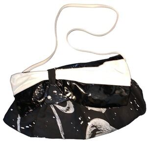 Cynthia Matthews Vintage Black and White Patent Leather and Fabric Shoulder Bag