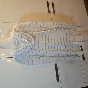 CYNTHIA ROWLEY 100% Linen Hoodie Open Lightweight Cardigan Blue White Size Small
