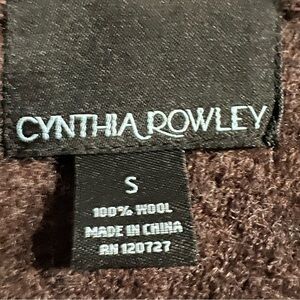 CYNTHIA ROWLEY 100% Wool Ruffle Cardigan W Rosette & Snap Closure Brown Sz Small