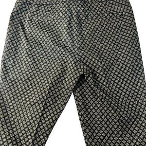 Size 2 Cynthia Rowley dress pants. With the snazzy geometric pattern, these pants are ideal for casual, workwear, or business occasions. Made from a blend of Polyester, Spandex, and Cotton, these pants offer comfortable stretch and a flat front. Zipper closure, straight leg style, pockets front and back