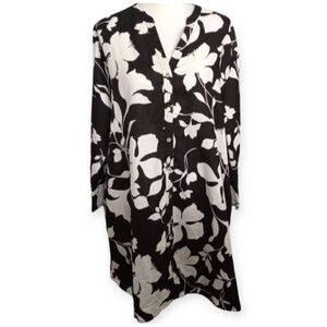 CYNTHIA ROWLEY BLACK & WHITE FLORAL LINEN TENT DRESS W/POCKETS SZ.L EUC.