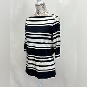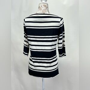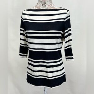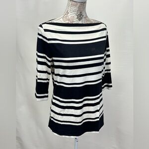 Ivory and black stripe boatneck top from CYNTHIA ROWLEY, size L. Top has 3/4 sleeves.
