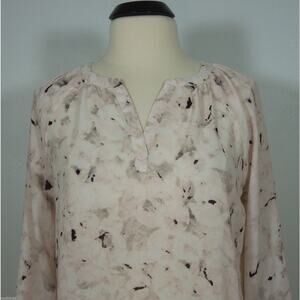 CYNTHIA ROWLEY Blouse S SMALL Womens Split Neck Loose Printed