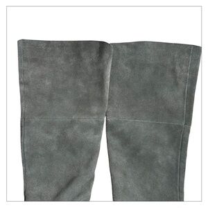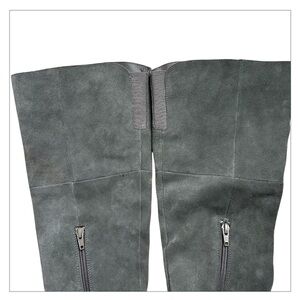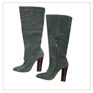 CYNTHIA ROWLEY DLUXE Women’s Knee High Suede Boots Gray 4” Stacked Brown Heel 8M