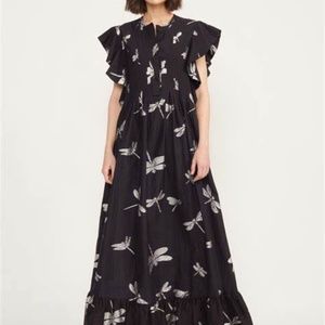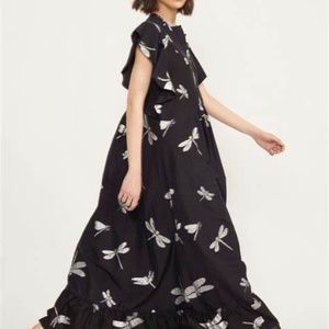 CYNTHIA ROWLEY DRESS CAFTAN BLACK WITH SILVER DRAGONFLIES